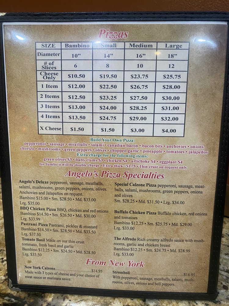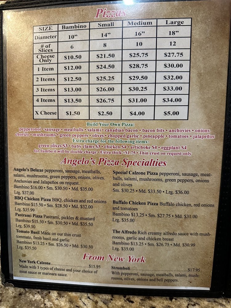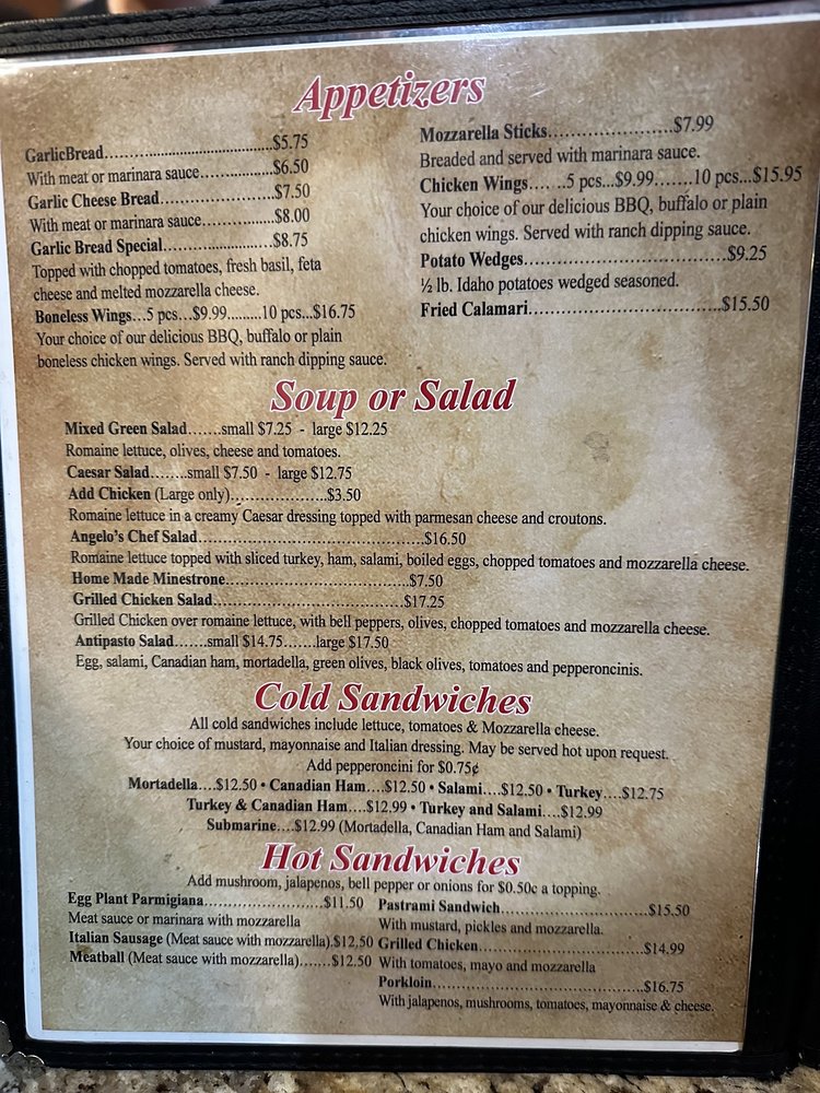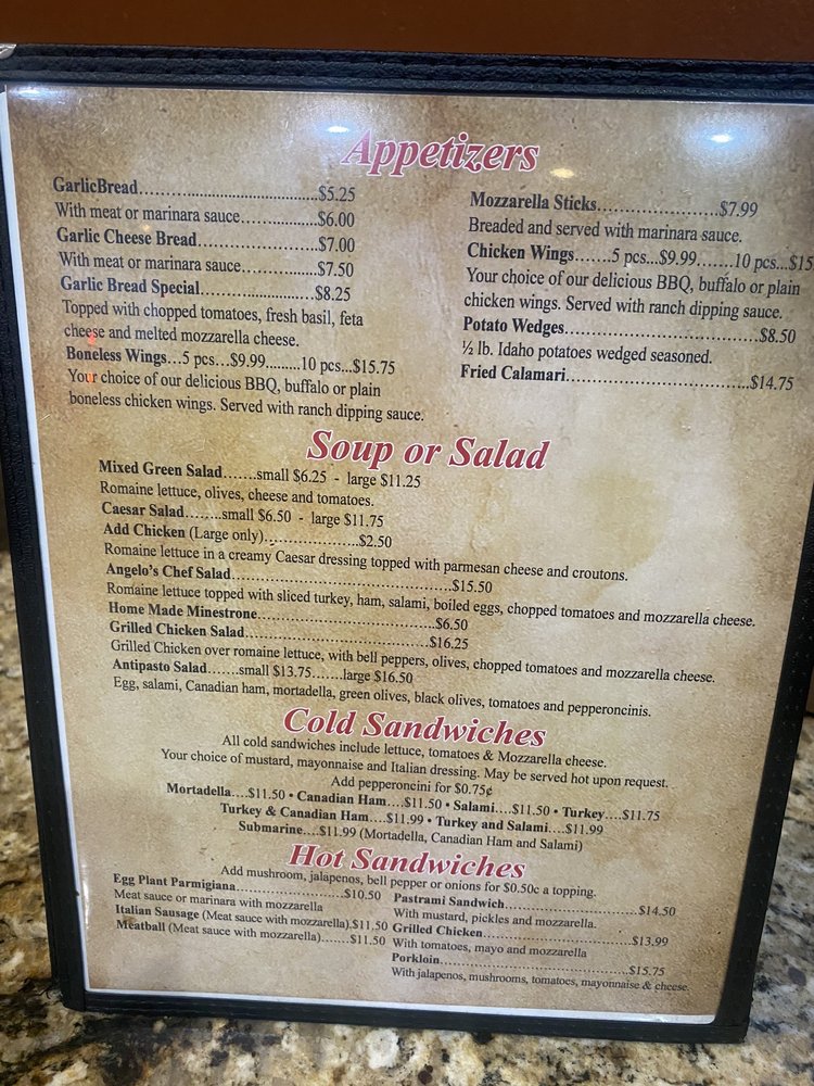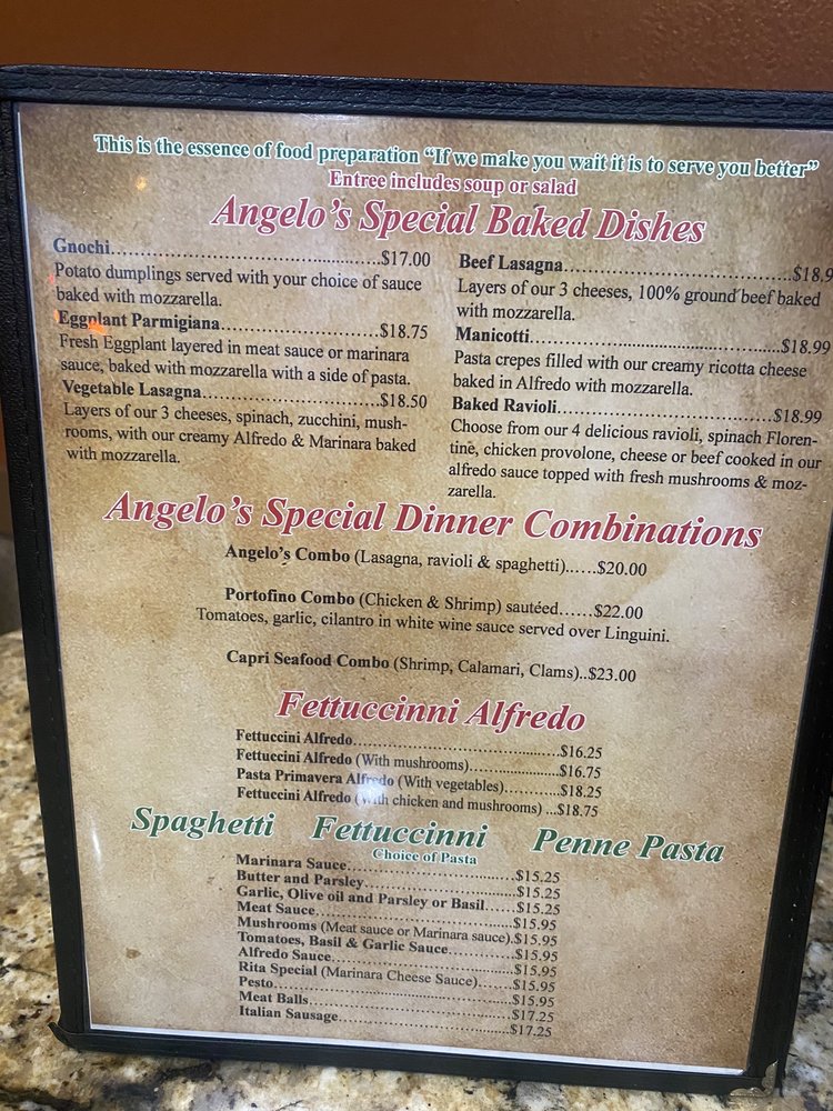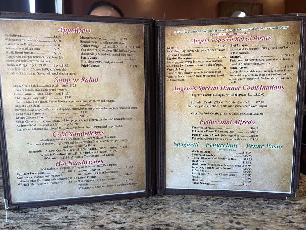 Angelo’s Italian Menu (Update 2025)