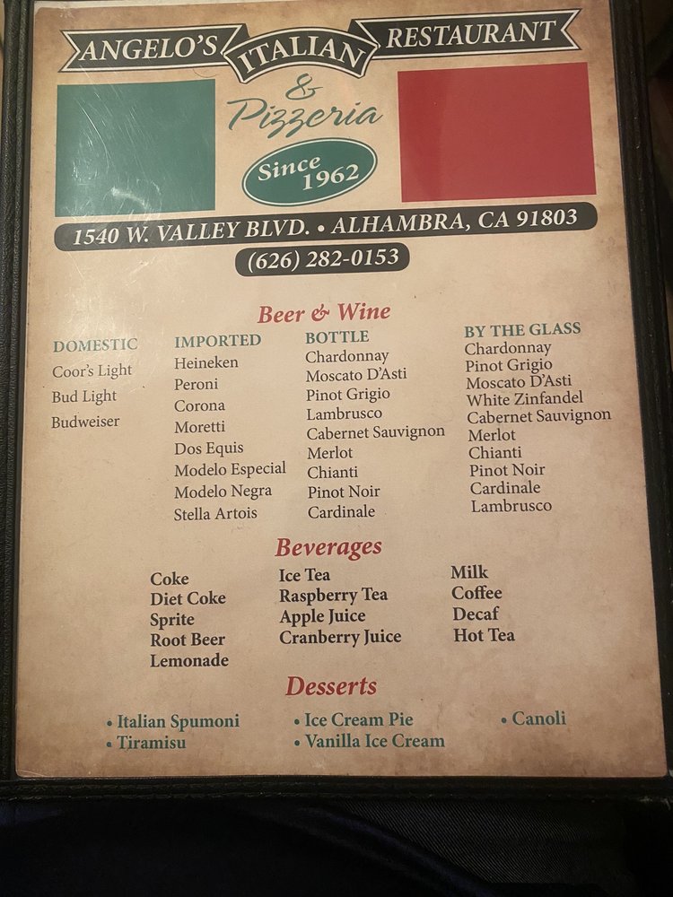 Angelo’s Italian, located in Alhambra, CA, is a casual Italian restaurant known for its delicious pizzas and pasta dishes. With a menu offering vegan and vegetarian options, as well as catering services, this restaurant is perfect for groups, families, and lunch or dinner outings. Customers rave about the generous portions, flavorful dishes, and friendly service. The Bambino-sized pizzas are surprisingly large and satisfying, while the pasta trio offers a variety of flavors and textures. The creamy Alfredo pasta and unique pizza combinations like the Angelo’s Combo are standout items. The staff is praised for their quick service and accommodating large groups. Overall, Angelo’s Italian provides a cozy and welcoming atmosphere for enjoying quality Italian cuisine.